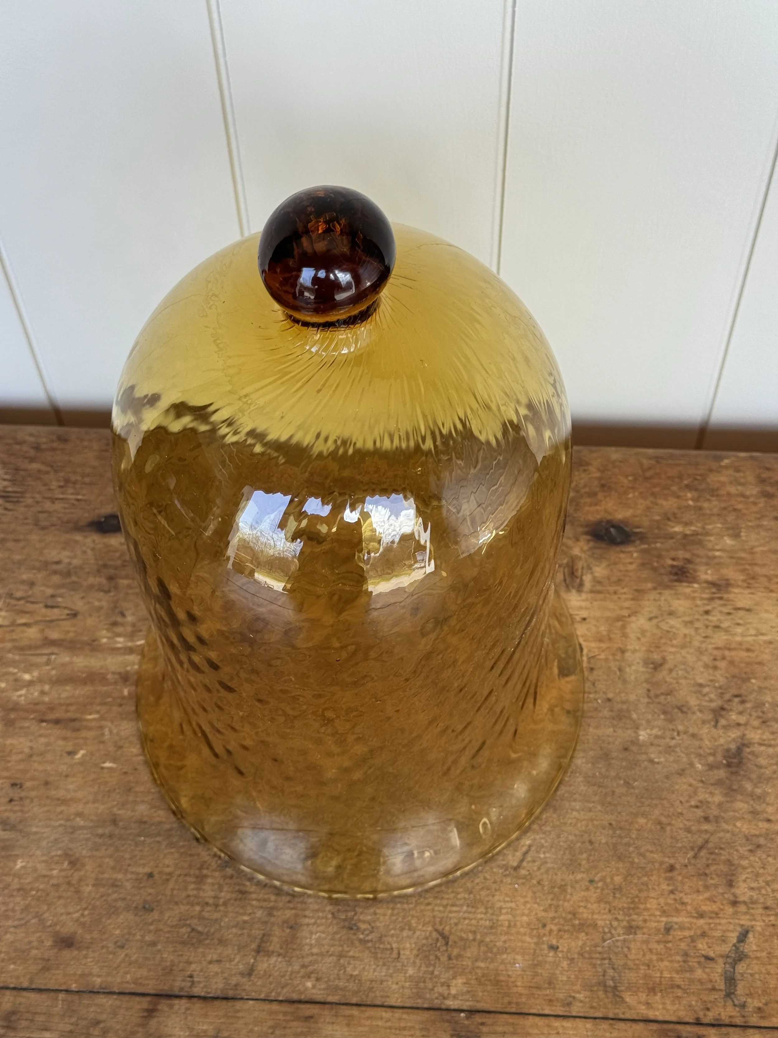 This Amber Class Cloche amber hue adds warmth and sophistication, perfect for displaying plants, candles, or collectibles. This versatile cloche functions both decoratively and protectively, making it a timeless piece.
